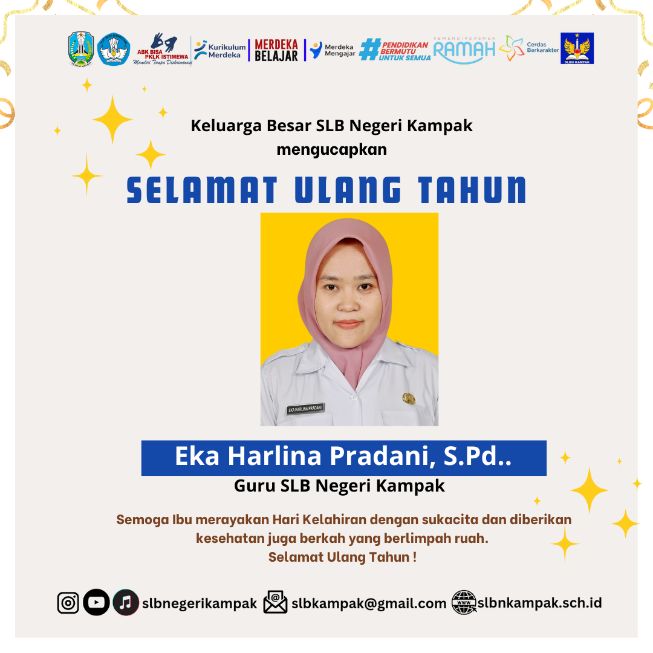 Salam sejahtera untuk seluruh peserta didik, orang tua, guru, staf SLB Negeri Kampak tercinta.